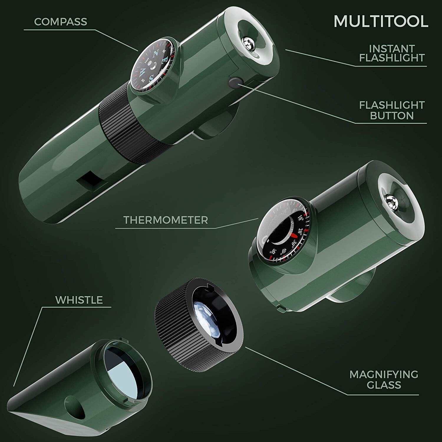 π§ MULTI-TOOL (with 5 functions): π COMPASS: Perfect for learning basic directions and how to read maps. π‘οΈTHERMOMETER: Also learn about Celsius & Fahrenheit with the included guide. π WHISTLE: Have fun playing outdoor games. π¦ INSTANT FLASHLIGHT: For that moment that you need a quick light. π MAGNIFYING GLASS: An additional specialized magnifying glass.