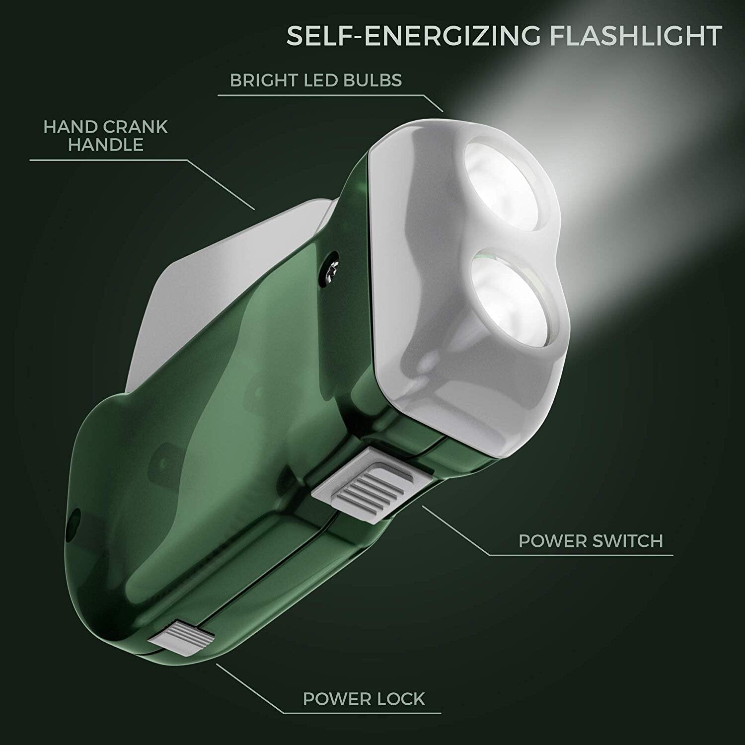 π¦ SELF ENERGIZING FLASHLIGHT: Donβt run out of light ever when camping, traveling, or hiking. The flashlight recharges itself each time you crank its handle without the need for batteries, ensuring you a lifetime of light even in the farthest places. And in the process learning about how energy is created. π¨ HANDHELD FAN: Cool off on hot summer days with the battery-operated handheld fan with safe soft wings (batteries included).