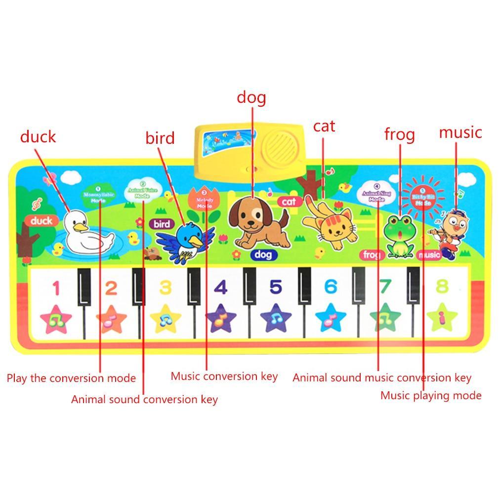 - SAFE & FUN PIANO MAT :The musical piano mat is well made with polyester materials that provide a soft and non slip surface, and filled with high density cushioning foam, chemical free, no sharp edges, to give maximum protection for little hands and feet. High-quality fabrics do not hurt kids' Feet and it is easy to clean. Kids large kids musical mats musical toys can touch and step on.