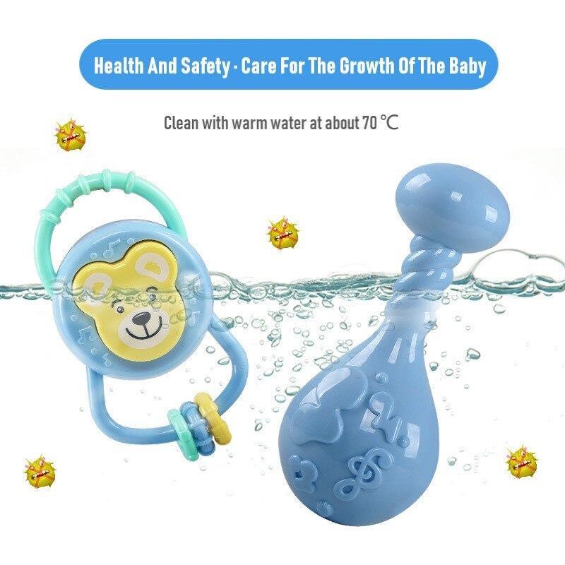 - RATTLES AND BABY TEETHER:Baby Cartoon Rattle Toy has hand grasp teether can attract baby's attention. Tested with FDA and ASTM. BPA FREE! Great for a baby shower or birthday present and Christmas gift as well