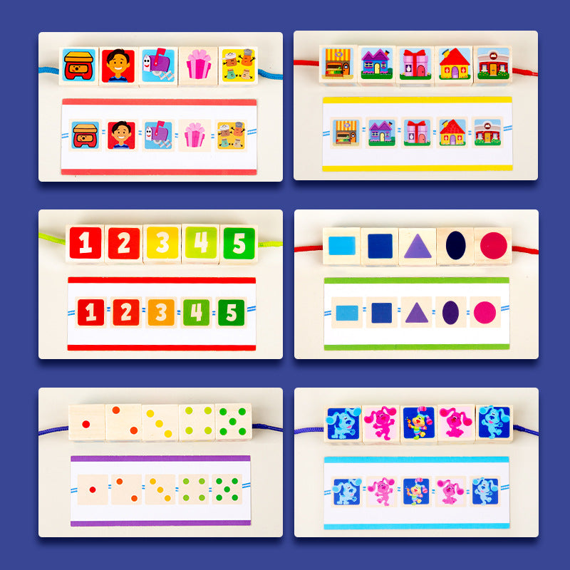 Children's Large Particle Bead Thread Rope Building Blocks Digital Shape Color Focus Training Early Education Puzzle Toys