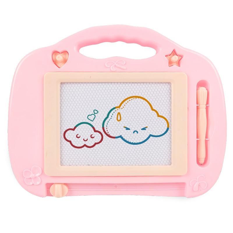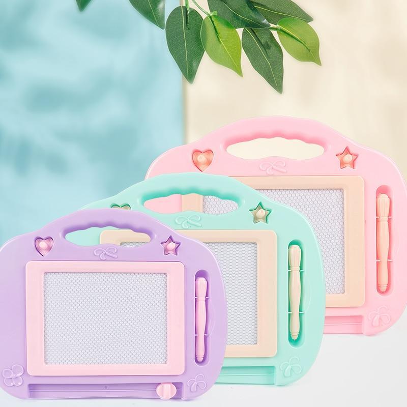 - EASY TO DRAW AND ERASE -- Simple style erasable magnetic writing board, depends on magnetic powder to work without dirty. Just slide eraser to clear, then start again and again, kids can play by themselves. Light weight, convenient handle, in addition to be indoor home toy, portable as outdoor travel entertainment toy too. Keep your little one busy and quiet, no noisy & mess from now on.