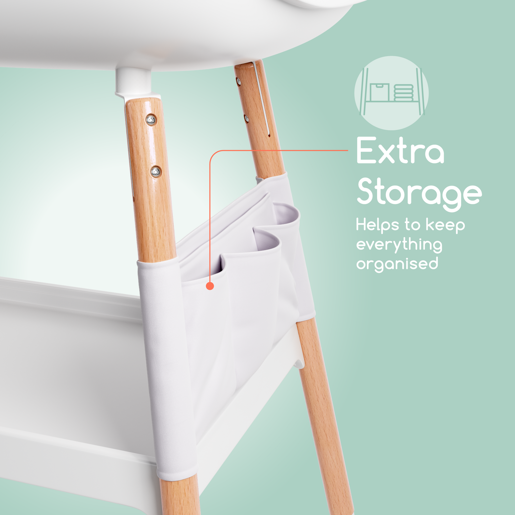 We understand that having everything you need at arm's reach is essential when caring for your little one. That's why our changing table features a shelf space and pockets for all your baby essentials, making it easy to keep everything organized and within reach.