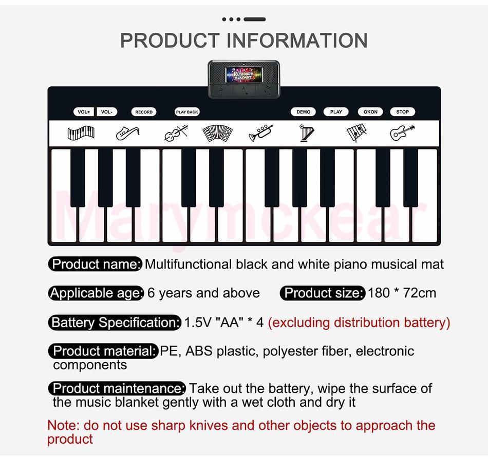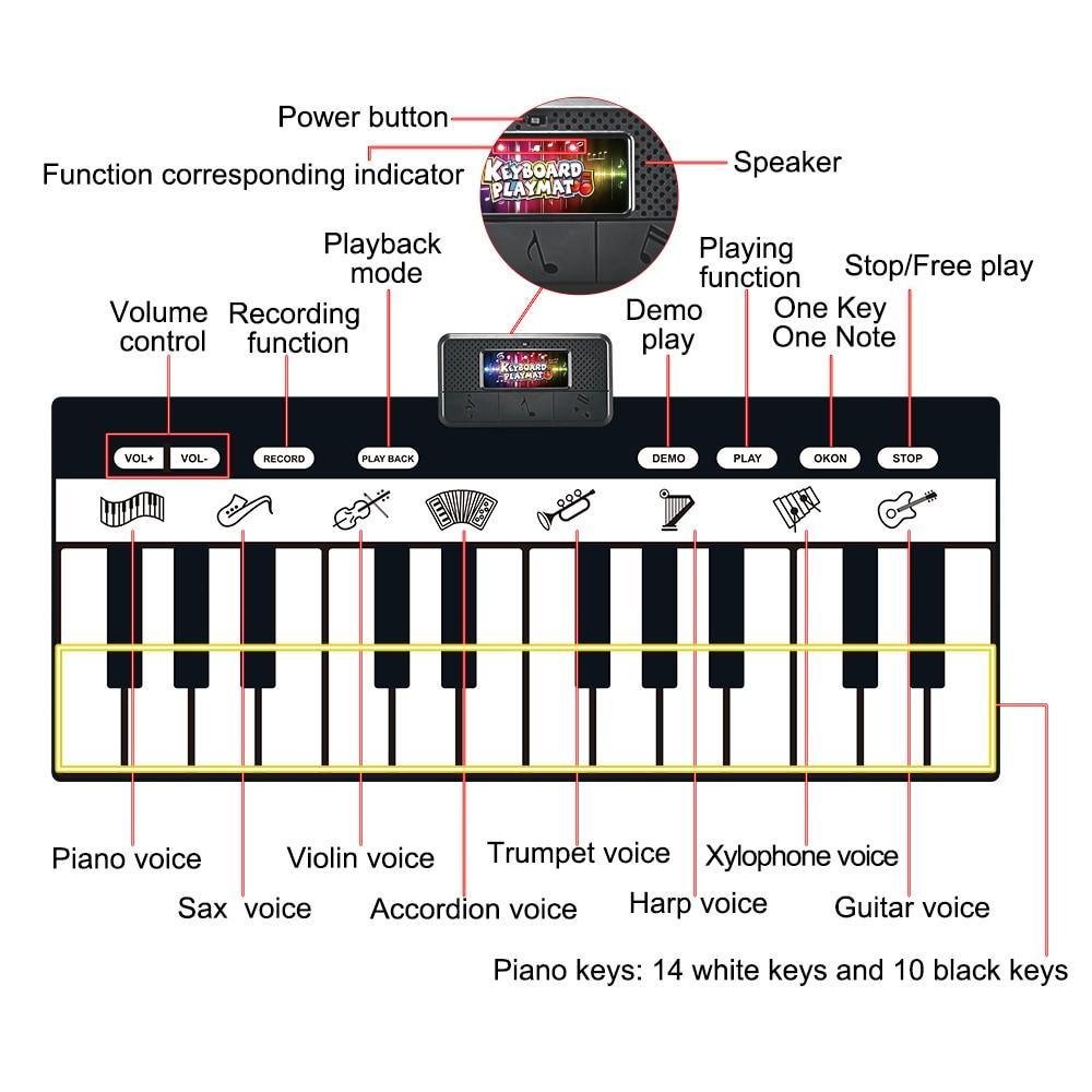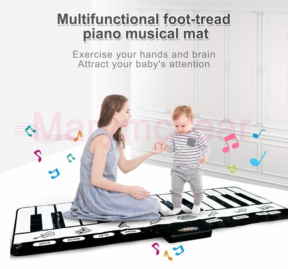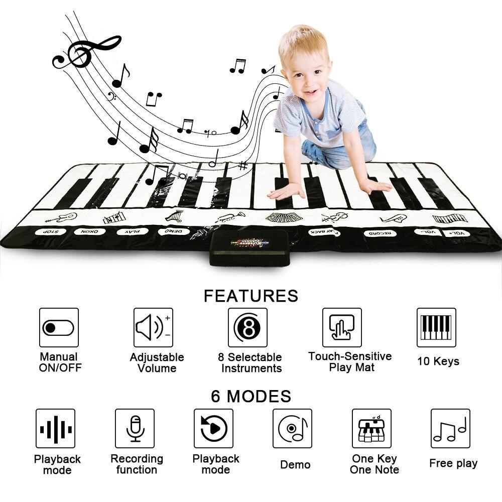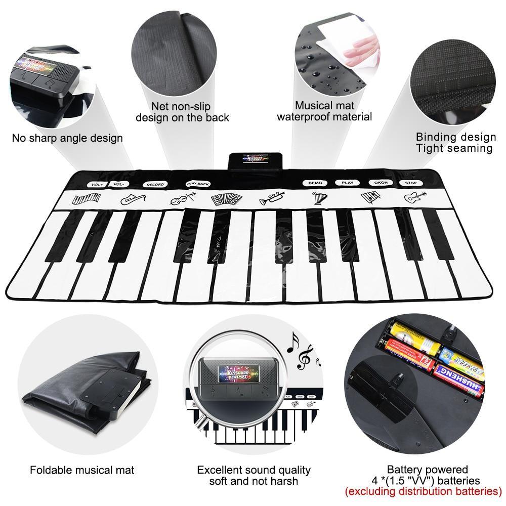 - EDUCATIONAL TOY & GREAT GIFT - Piano play mat by touching and stepping on, improve kid's hand-feet coordination at an early age, and your little one can be promoted music intelligence, vision training, sense of touching, sense of hearing. Music help with child development, brainpower, memory, confidence, patience, socially and fosters creativity! It is the best gift for a boy and girl, birthday, festival.