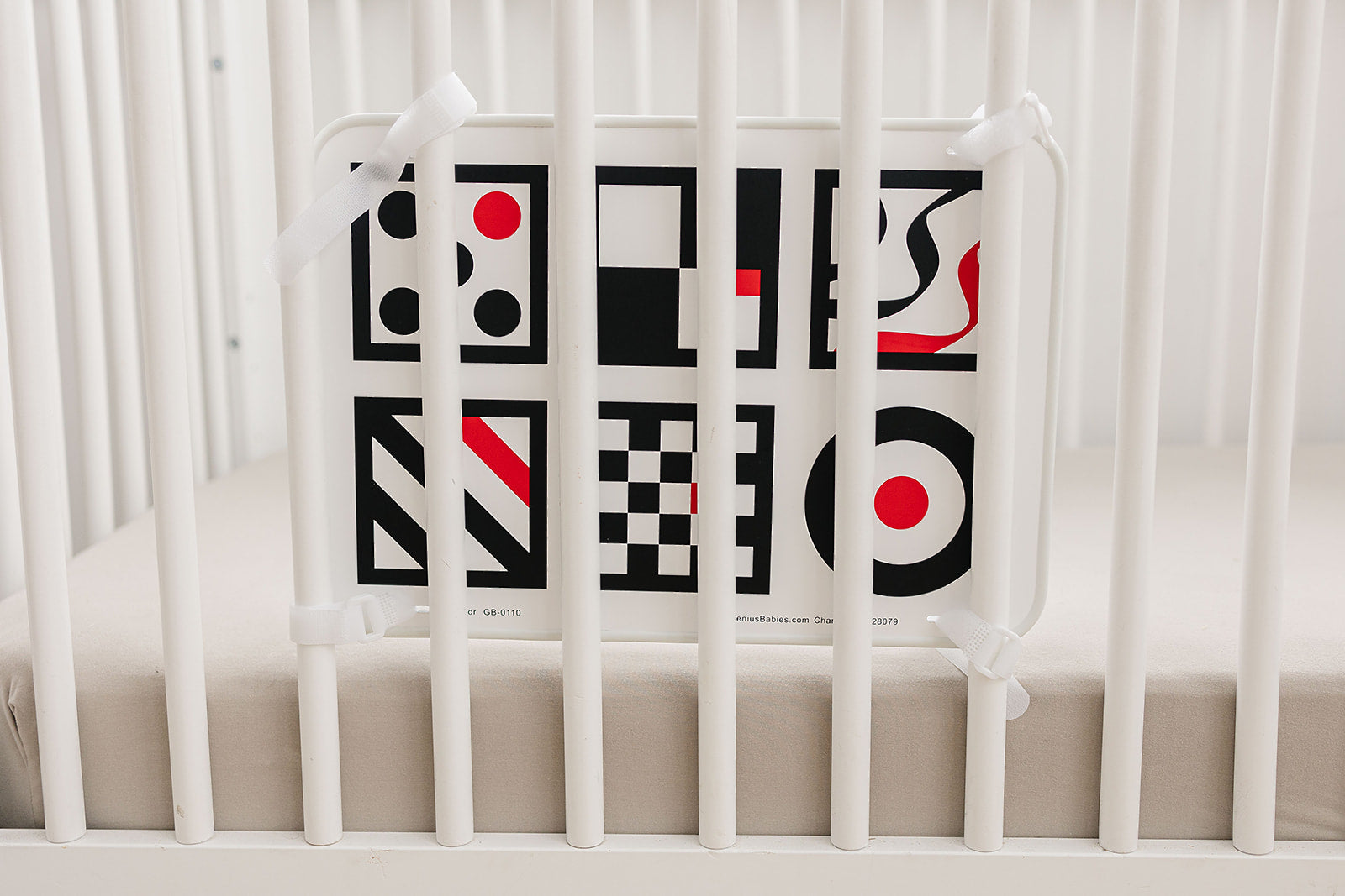 Details: We designed this baby safe mirror after hospitals and health care organizations repeatedly approached us on how to create a baby mirror that could be used in the NICU. After much research and development, we created this large, shatterproof baby mirror. Using hospital grade rubber edges and a shatterproof material for the mirror itself, this product has stood up to testing and remains our most popular baby mirror. Not only does this mirror for baby surpass safety testing standards, it also is an educational and fun toy for baby. Did you know babies love mirrors? They're fascinated by faces and reflections, even though they don't always know the face staring back at them is their own! Upon birth, babies have blurry vision. They can see the outline of faces and will start to recognize the shapes they see in faces. Flip this crib mirror around and the other side has high contrast graphics in black, white and red, the first three colors that your baby will see best. We also created this baby mirror with busy and sleep-deprived parents in mind. That's why we made this mirror for baby super easy to attach to the crib: just use the four adjustable velcro straps included. It'll take one minute then you can move on to spending time with your Genius Baby.