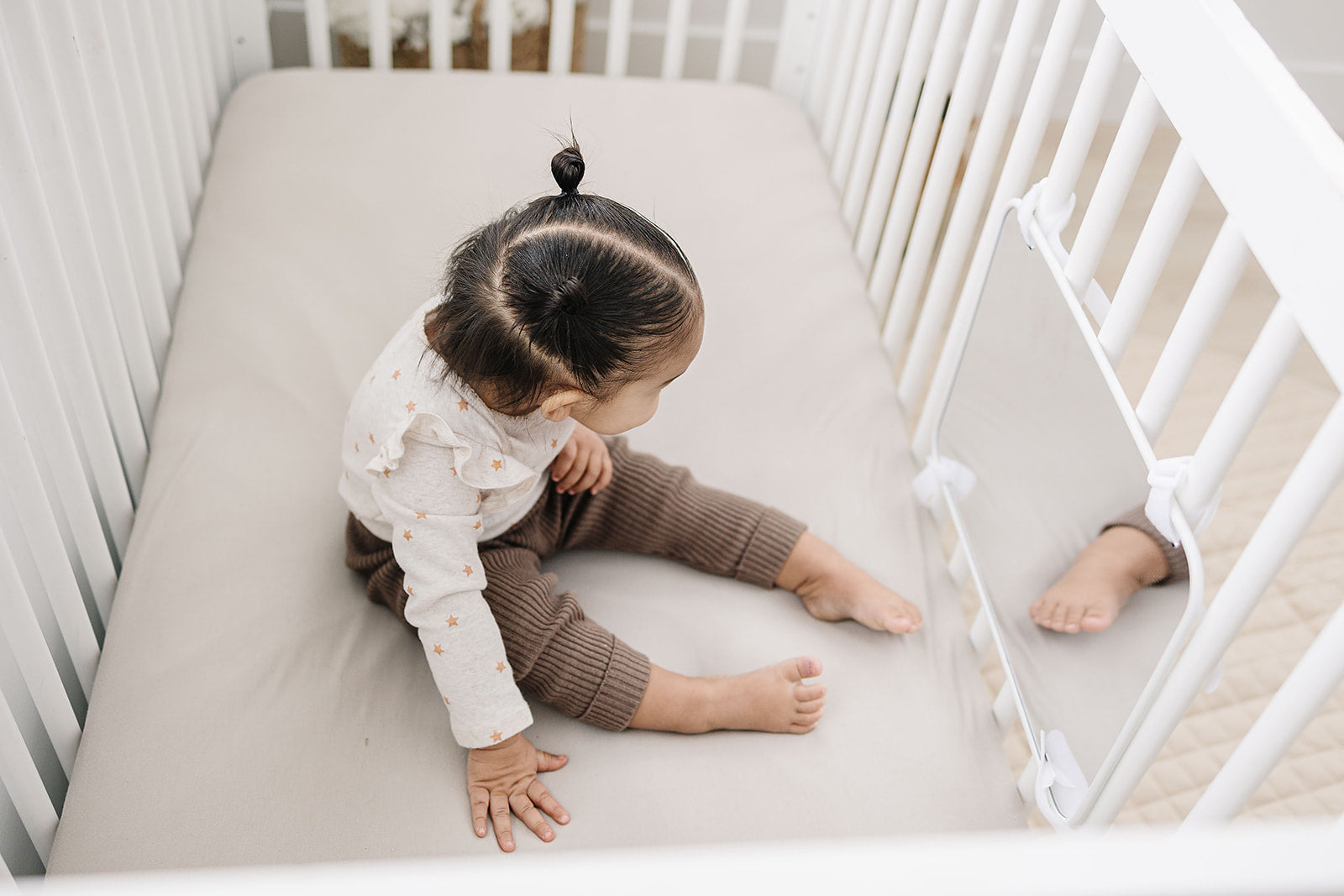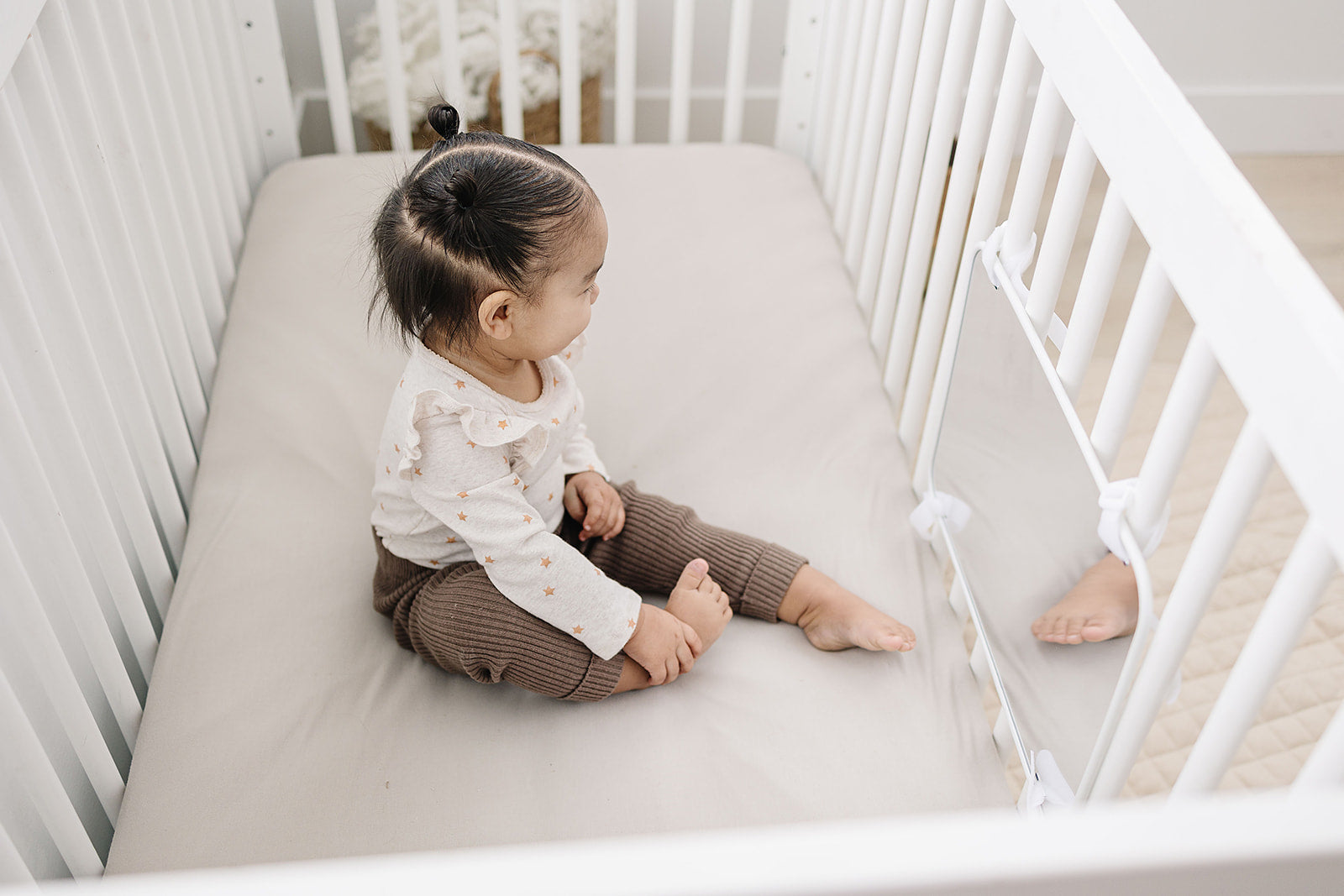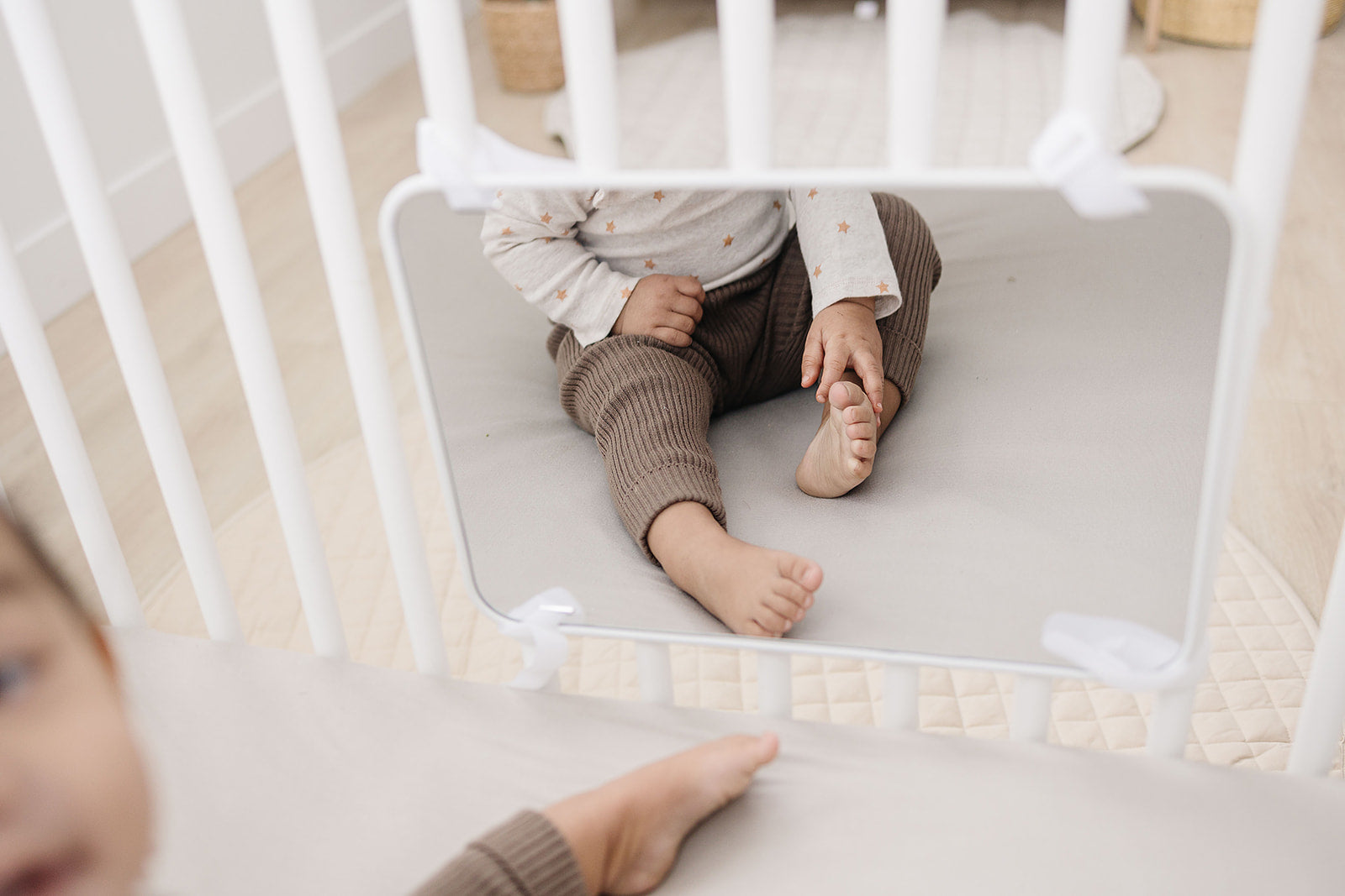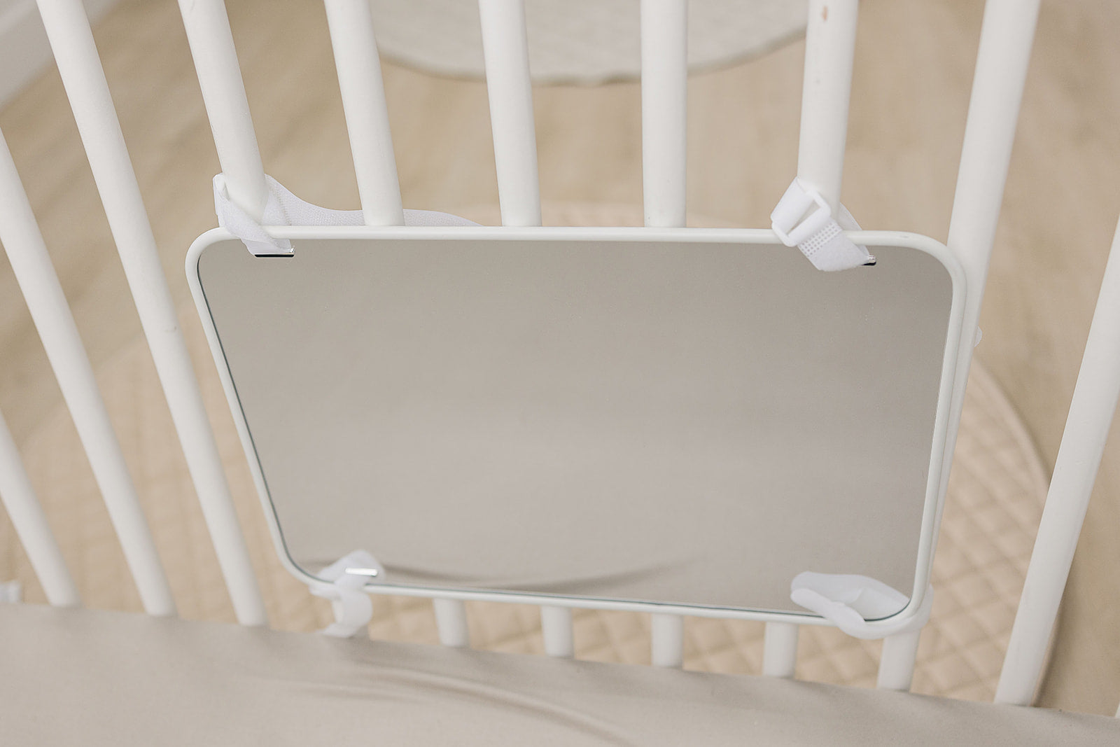- Easy to Attach: This crib mirror for baby is easy to attach to any crib using the included velcro straps. It's the perfect baby mirror for crib or bassinet to keep your baby entertained.