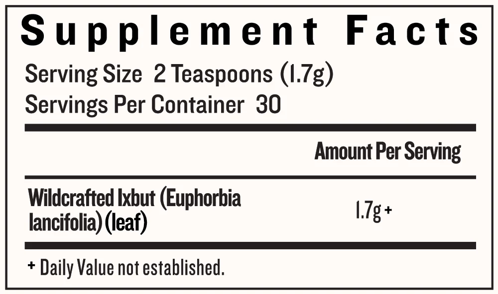 INGREDIENTS: Wildcrafted Ixbut leaves.