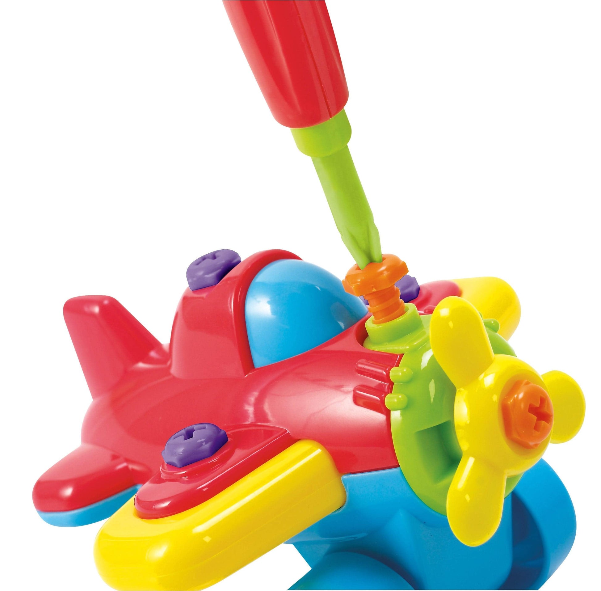 This junior-mechanic set has a working power tool and a shop full of parts to build three free-wheeling vehicles! A motorcycle, prop plane, and race car are sized right for small hands and feature moving parts. Includes tool box, dull child-safe electric power drill and manual screwdriver, and extra screws. Everything stores neatly in portable storage box. Requires 2 AA batteries, not included.