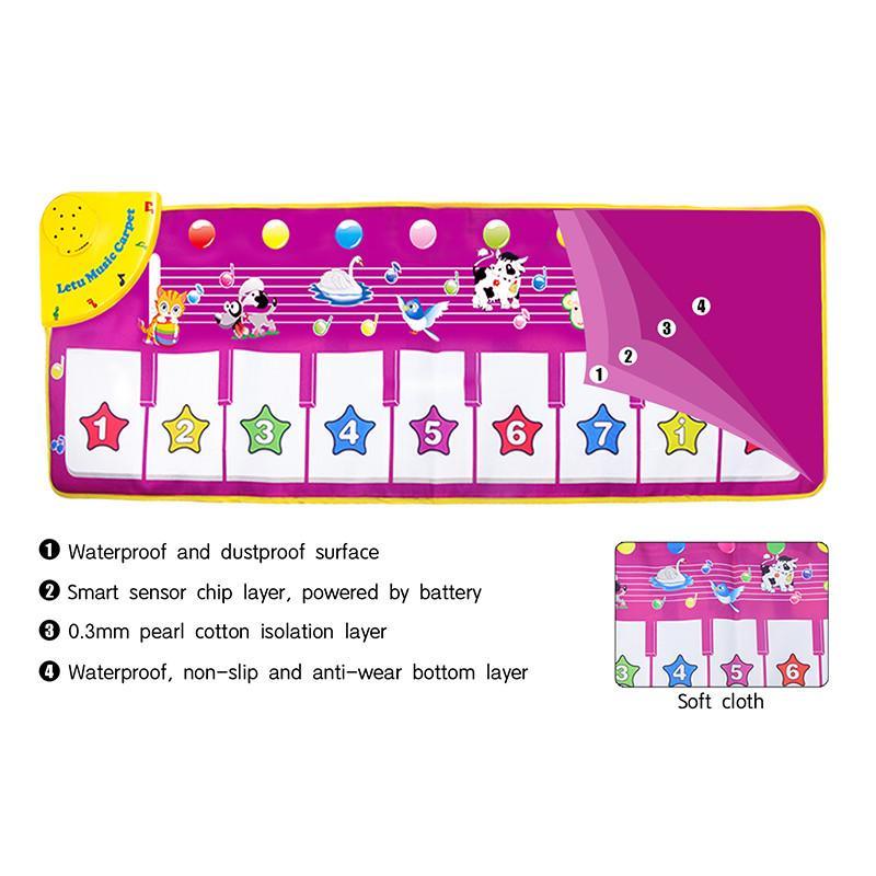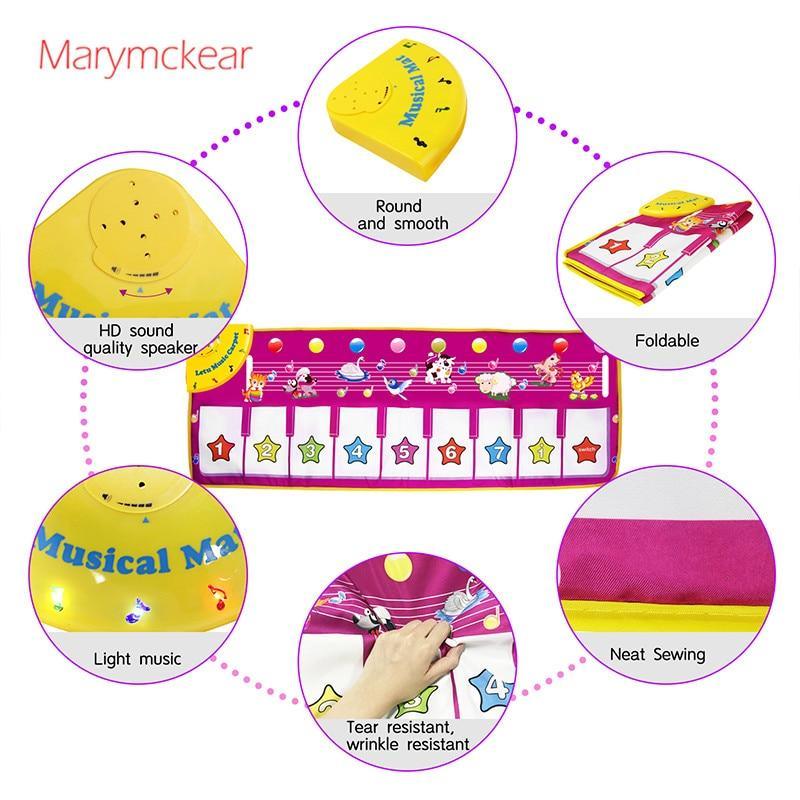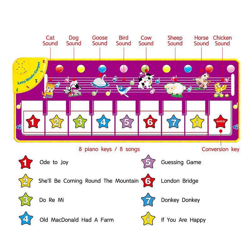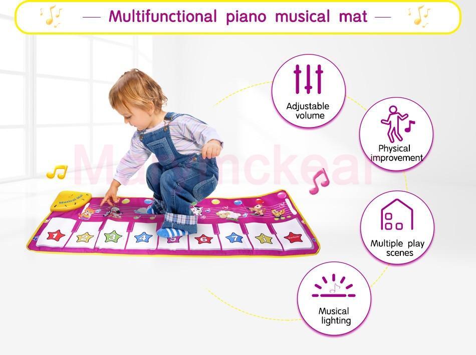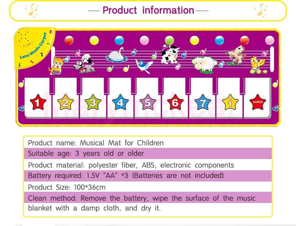 - PIANO MAT FOR KIDS - 5 selection modes(demo, one-click annotation, play, playback and record)to meet babies play need. Kids large piano activity mat musical toys can touch and step on. Mat music sound reward baby's natural kicking and touching. Add a lot of fun.