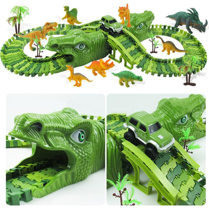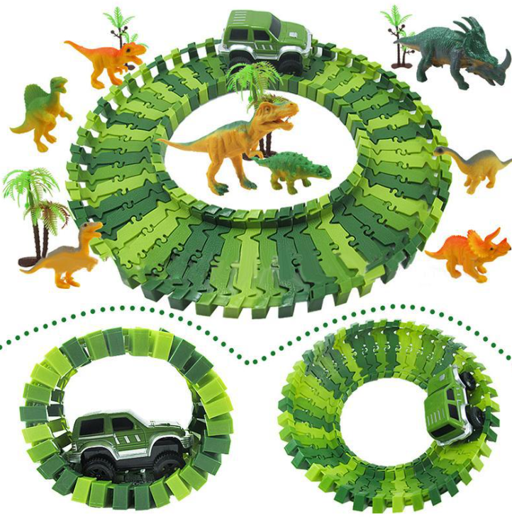 Experience the thrill of racing with our Racing Bend Rail Dinosaur Track. With built-in LED electronic flash lights and flexible track, your child's imagination will run wild. This DIY toy is a perfect gift for kids who love adventure.