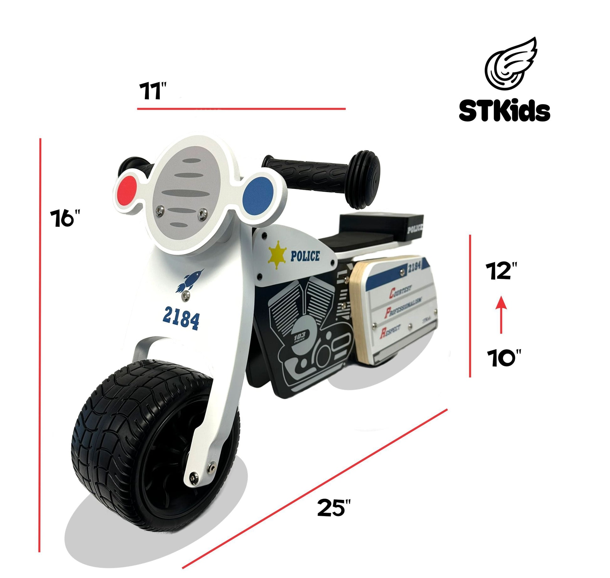 Beautiful Police Patrol Wooden Mini Balance Bike for Babies