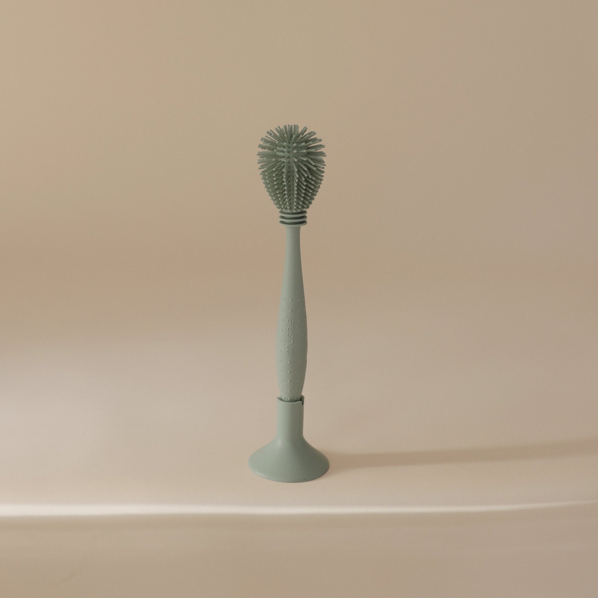 Our double-sided baby bottle brush is a perfect 2-in-1 solution for maintaining your little one's feeding essentials. One side features a larger removable brush head with durable non-scratch silicone bristles, designed to effortlessly clean the inside of baby bottles. The other side features a smaller brush head for precision cleaning bottle nipples and tight spaces.